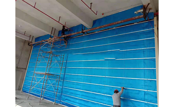 擋煙垂簾垂壁根據(jù)設(shè)計(jì)要求和現(xiàn)場(chǎng)實(shí)際情況采取如下施工順序:首先,搭設(shè)腳手架一放線一打眼--上脹栓一焊骨架。第二,吊件一安裝骨架…